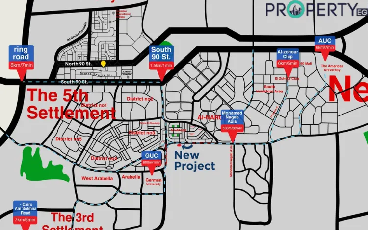 كما أنه يقترب من المعالم الشهيرة بالمنطقة حيث أنه يشرف على فندق الماسة، والنهر الأخضر بشكل مباشر، كما أنه يقترب من الحي الحكومي ومحطة المونوريل المركزية ابرز اماكن العاصمة الجديدة.
